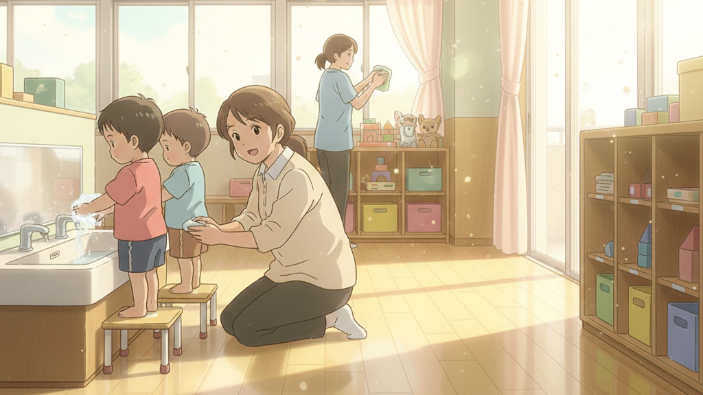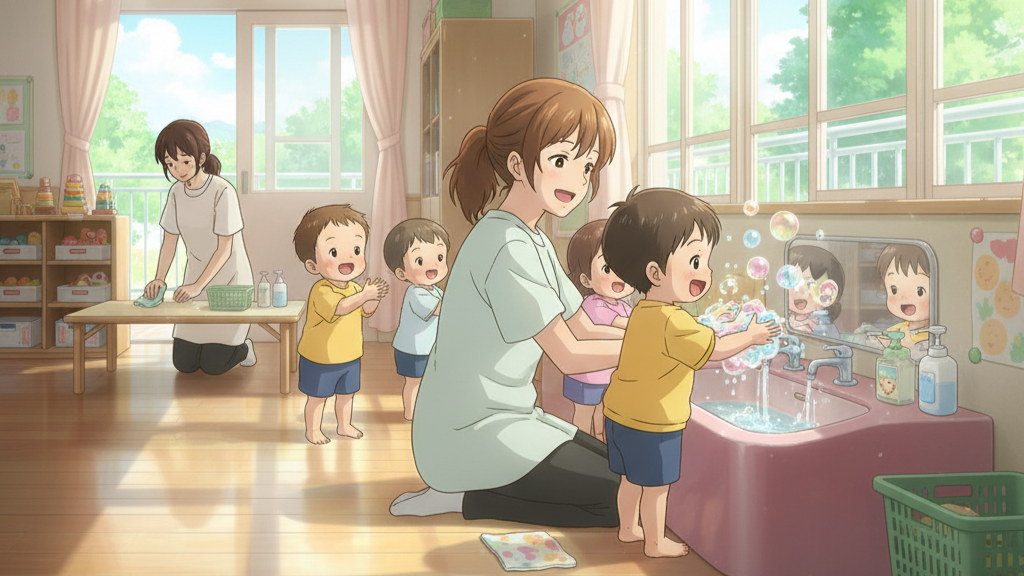 毎日、お子さんたちの笑顔のために、家事に育児にお仕事に、本当におつかれさまです!朝、慌ただしく準備をして、元気いっぱいのお子さんを保育園に送り出してくださる皆さんの姿に、いつも力をもらっています。さて、小さなお子さんを育てていると、どうしても心配になることの一つに、体調の変化がありますよね。「なんだか熱っぽいかな?」「鼻水がすごくて苦しそう…」「咳が止まらないな」など、お子さんの様子がいつもと違うと、胸がキューっとなったり、どうしよう!と不安になったり。本当に大切な赤ちゃんや子どもの病気には、誰でも敏感になりますよね。特に、保育園という集団生活の場では、どうしても様々な病気にかかる機会が出てきます。当園では、お子さんたちが毎日を安心して、思いっきり体を動かして過ごせるよう、日々の健康管理と安全確保に全力を尽くしています。今回は、乳幼児さんがかかりやすい感染症について、そしてご家庭と保育園でどんなことに注意して、どう連携を取っているかをお話しさせてください。少しでも、皆さんの「わかるわかる!」「そうなんだ」という発見や安心につながれば嬉しいです。